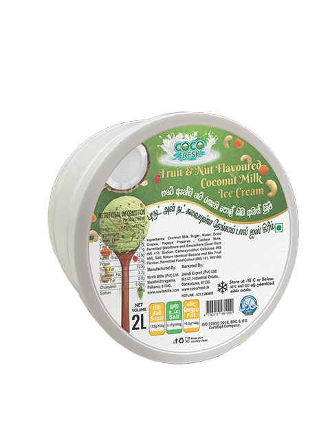 Discover the perfect harmony of tropical indulgence and wholesome goodness with COCOFRESH Fruit & Nut Flavored Coconut Milk Ice Cream. This dairy-free delight combines the creamy richness of coconut milk with a medley of succulent fruits and crunchy nuts, creating an irresistible treat for every occasion. Whether it’s a sunny day or a cozy evening, COCOFRESH Fruit & Nut Flavored Coconut Milk Ice Cream offers a perfect combination of flavor, texture, and nutrition that will leave you wanting more. Enjoy a scoop of tropical delight with a crunch of nature’s best!
